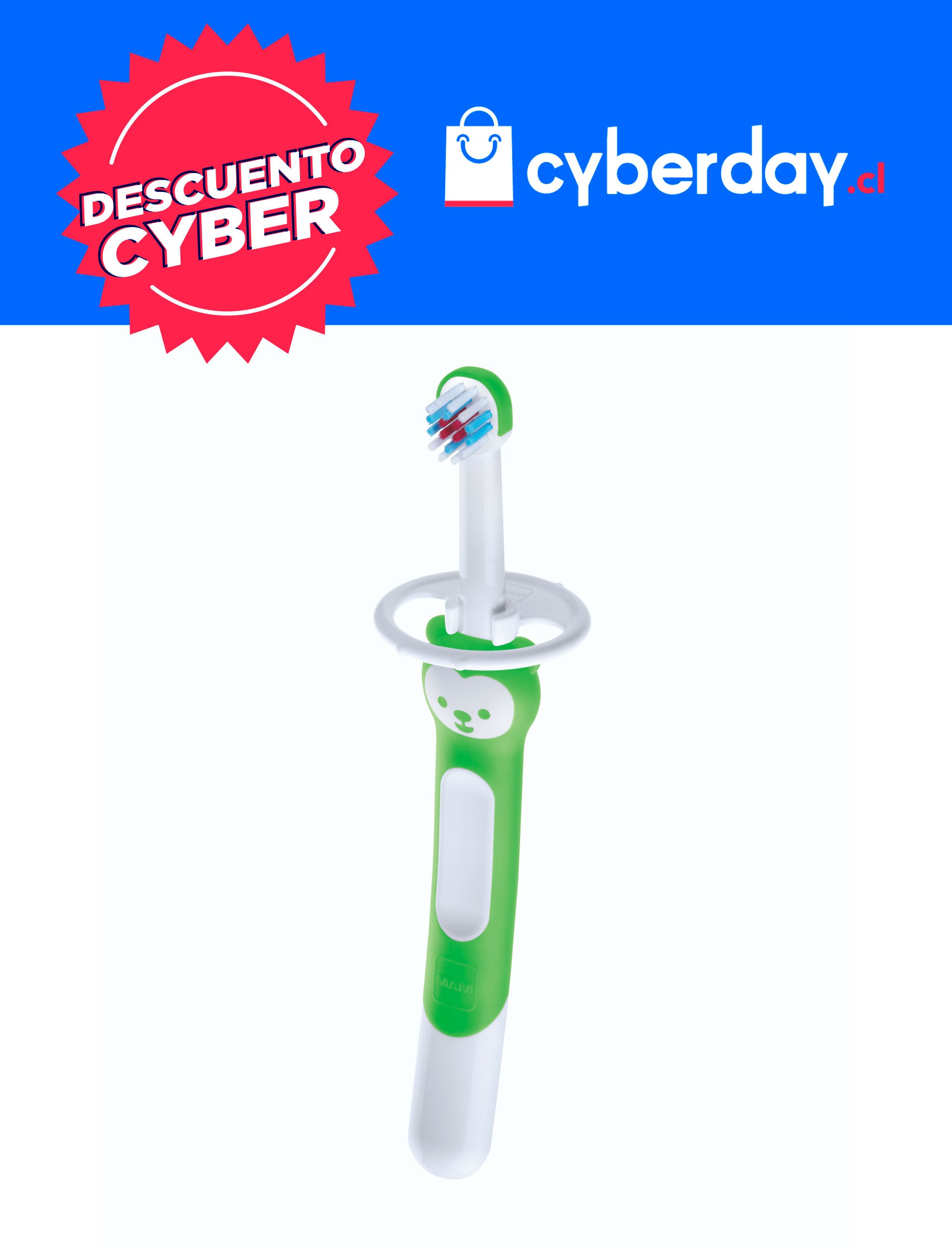 El Cepillo de Entrenamiento MAM, con su característica especial de mango extra largo, permite a los adultos cepillar junto con su bebé, guiando suavemente el cepillo para asegurar una limpieza adecuada de todos los dientes.