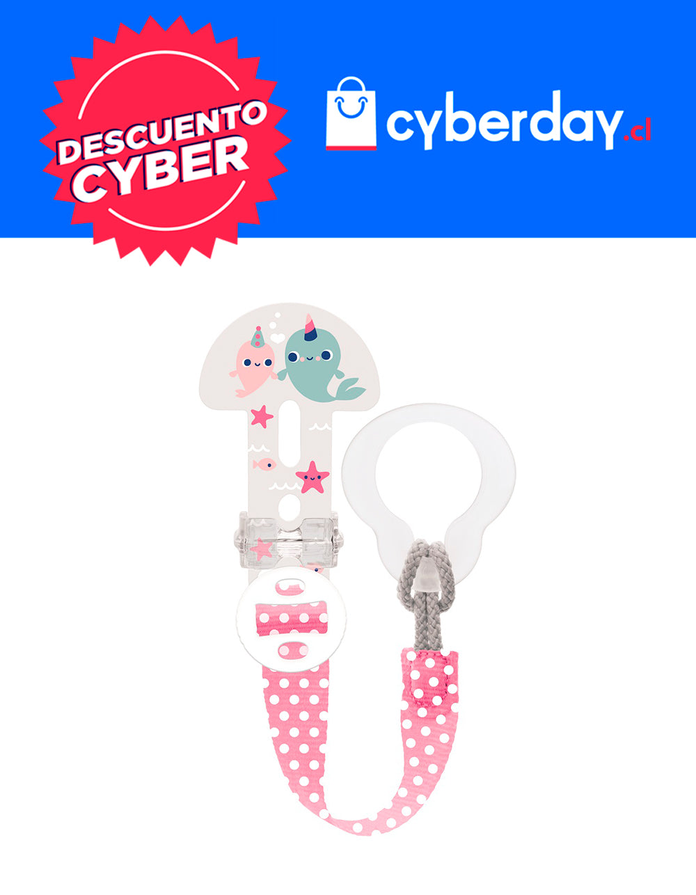 - Lazo flexible: permite sujetar chupetes con anilla, mordedores, juguetes y mucho más.